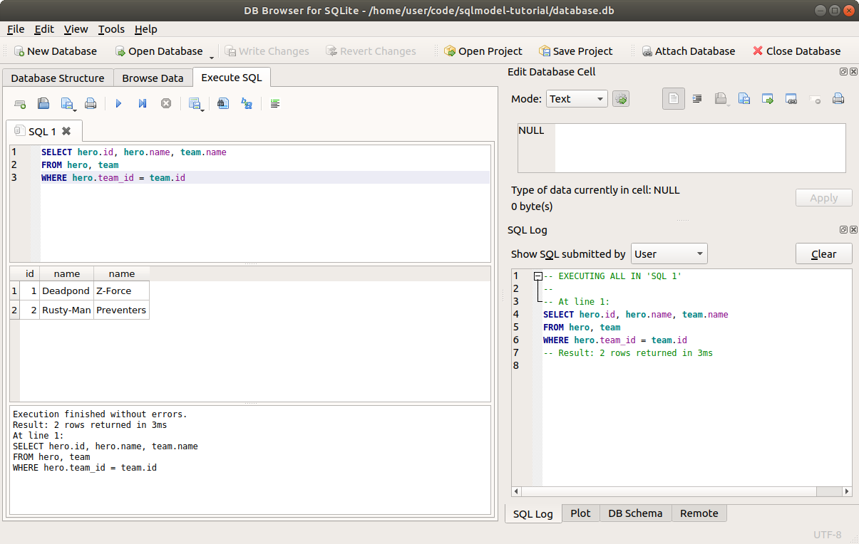 INFO Engine SELECT hero.id, hero.name, hero.secret_name, hero.age, hero.team_id